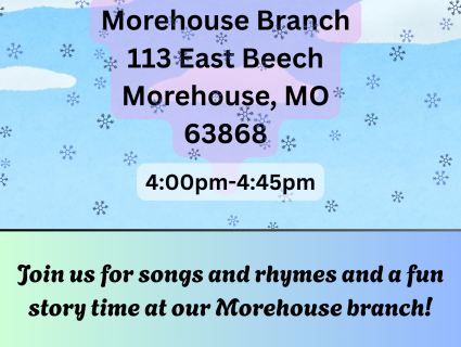 The New Madrid County Library system provides resources, services and expertise at seven locations throughout the county. In addition to the headquarters at Portageville, libraries are located at Gideon, Matthews, Morehouse, New Madrid, Parma and Risco, all under the direction of Lori Robinson.