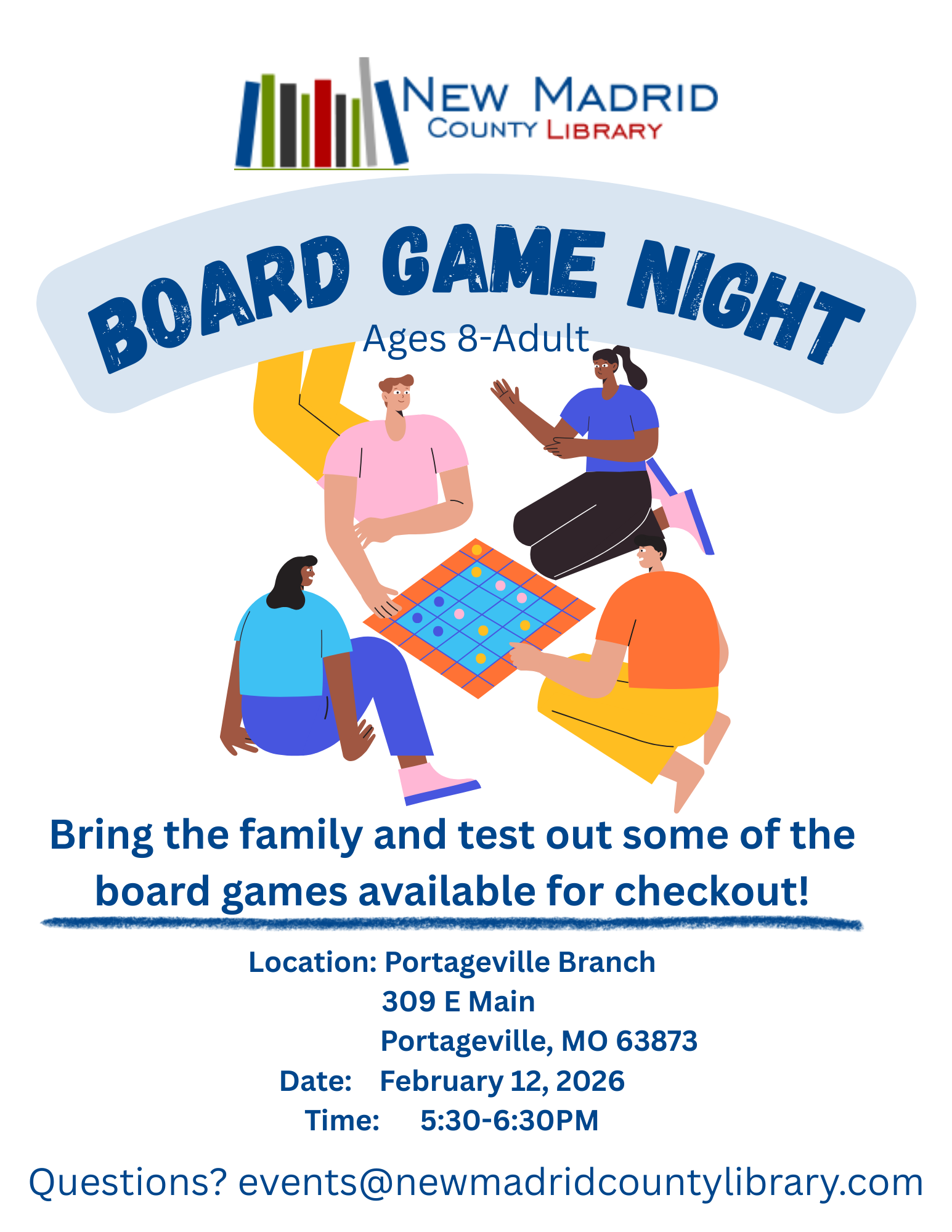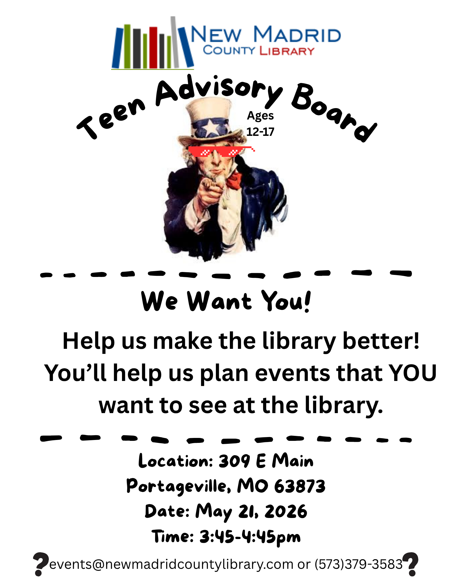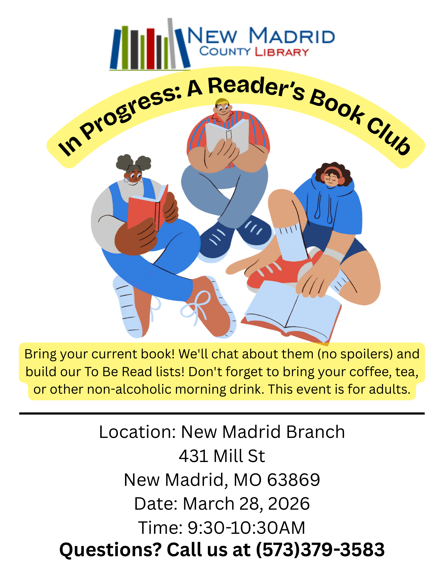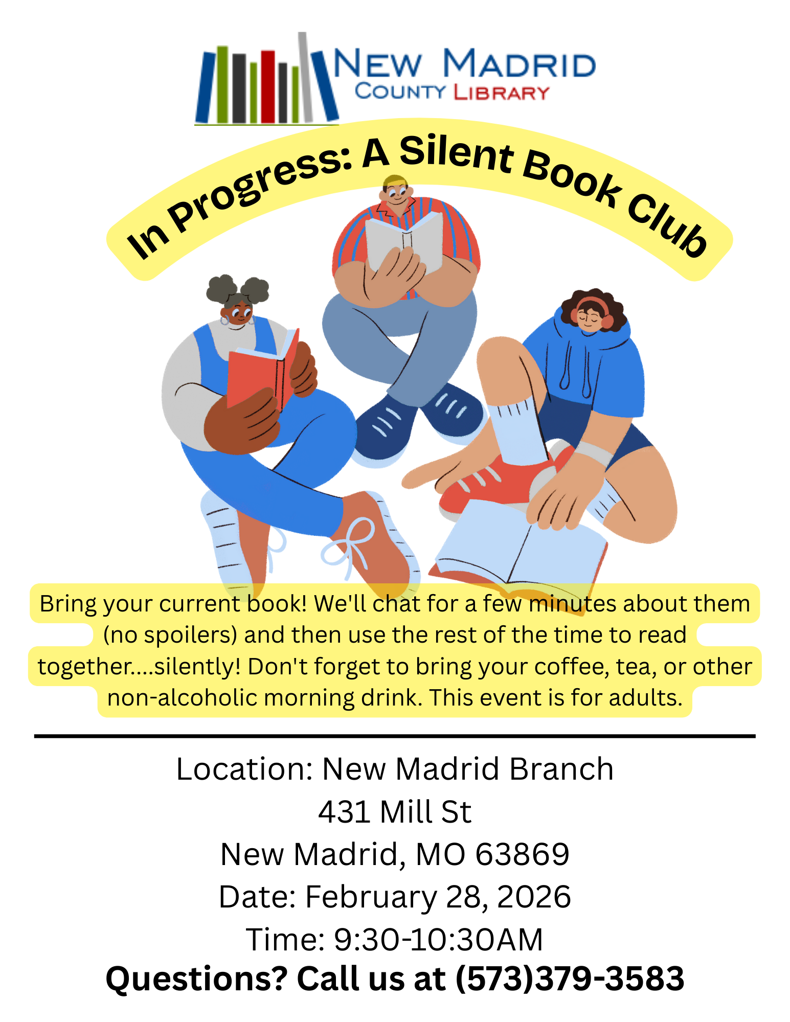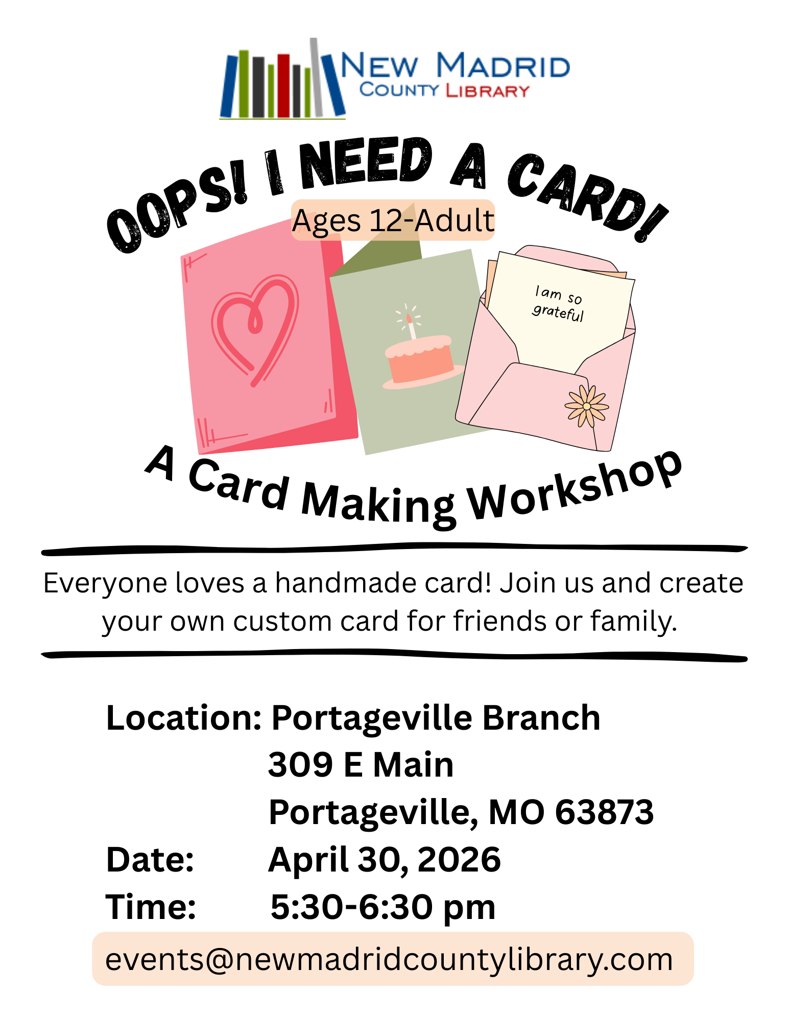 On this page you will find information for upcoming events at our branches and throughout the county. Questions? Email us at events@newmadridcountylibrary.com