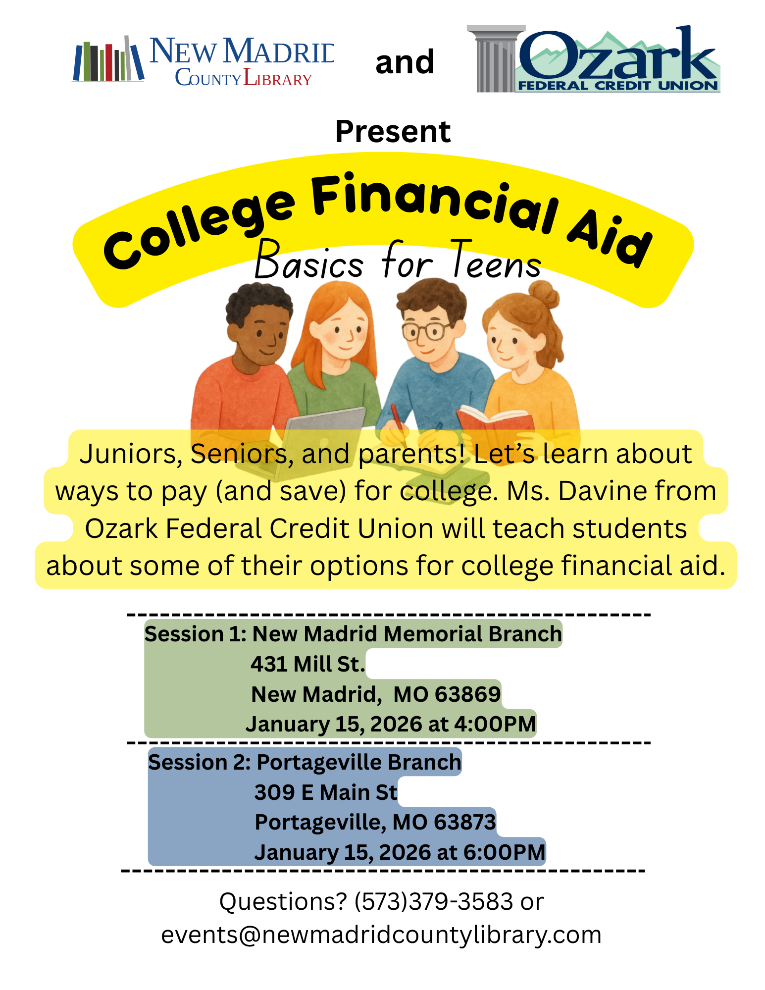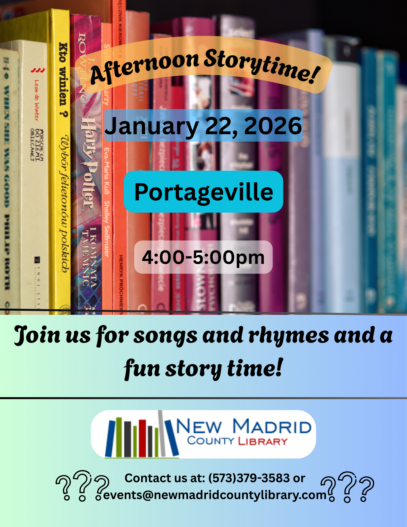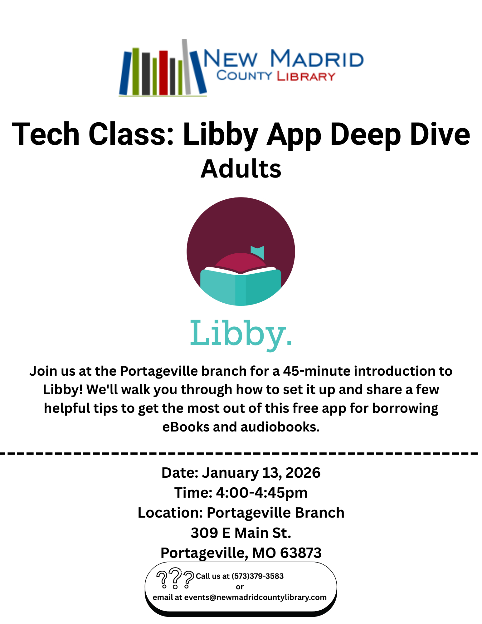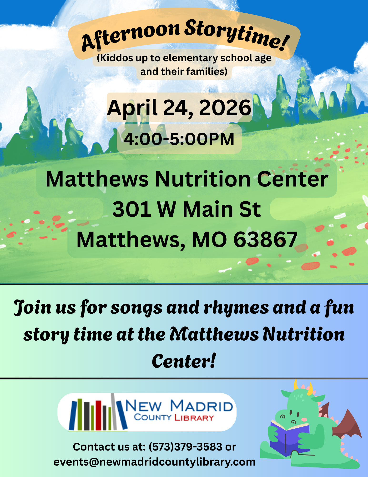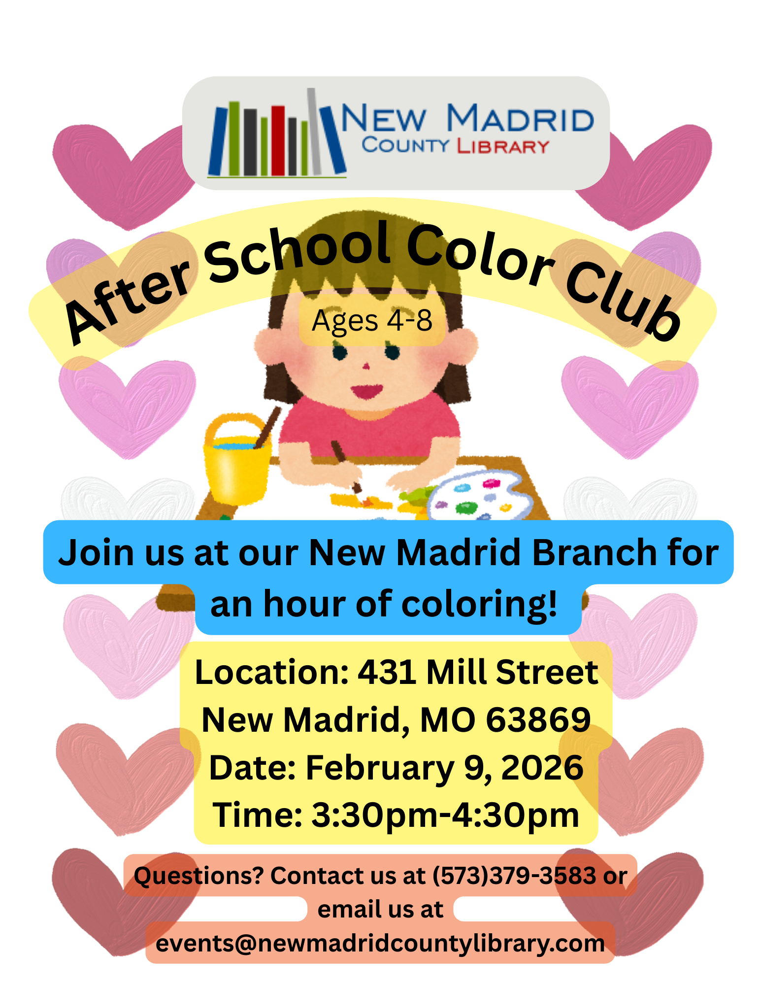 On this page you will find information for upcoming events at our branches and throughout the county. Questions? Email us at events@newmadridcountylibrary.com