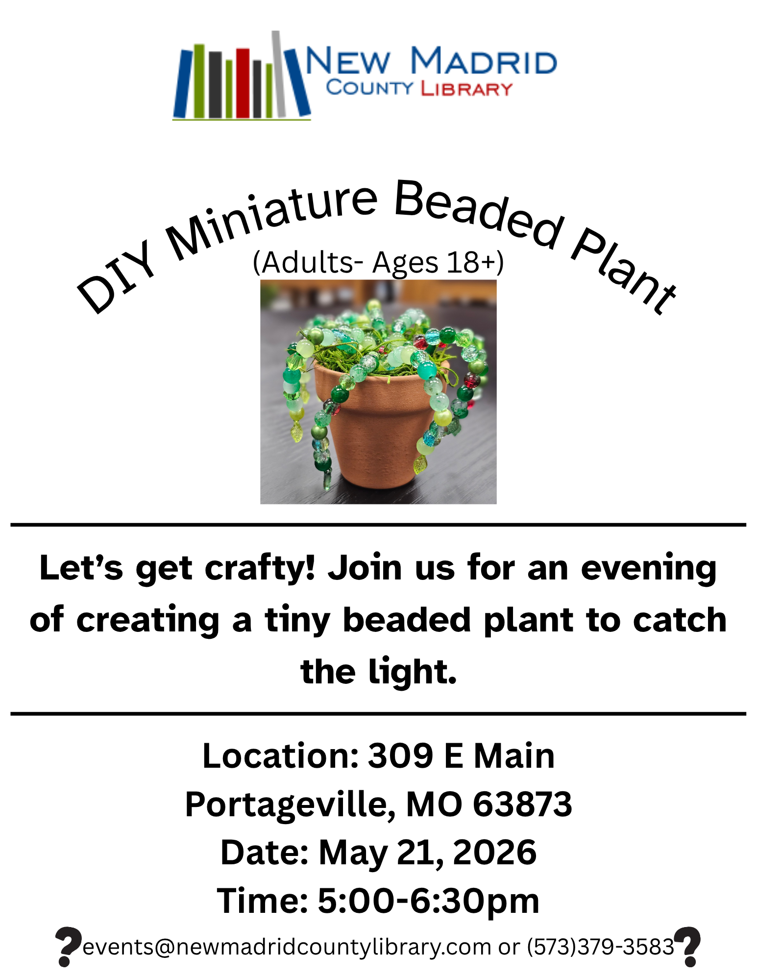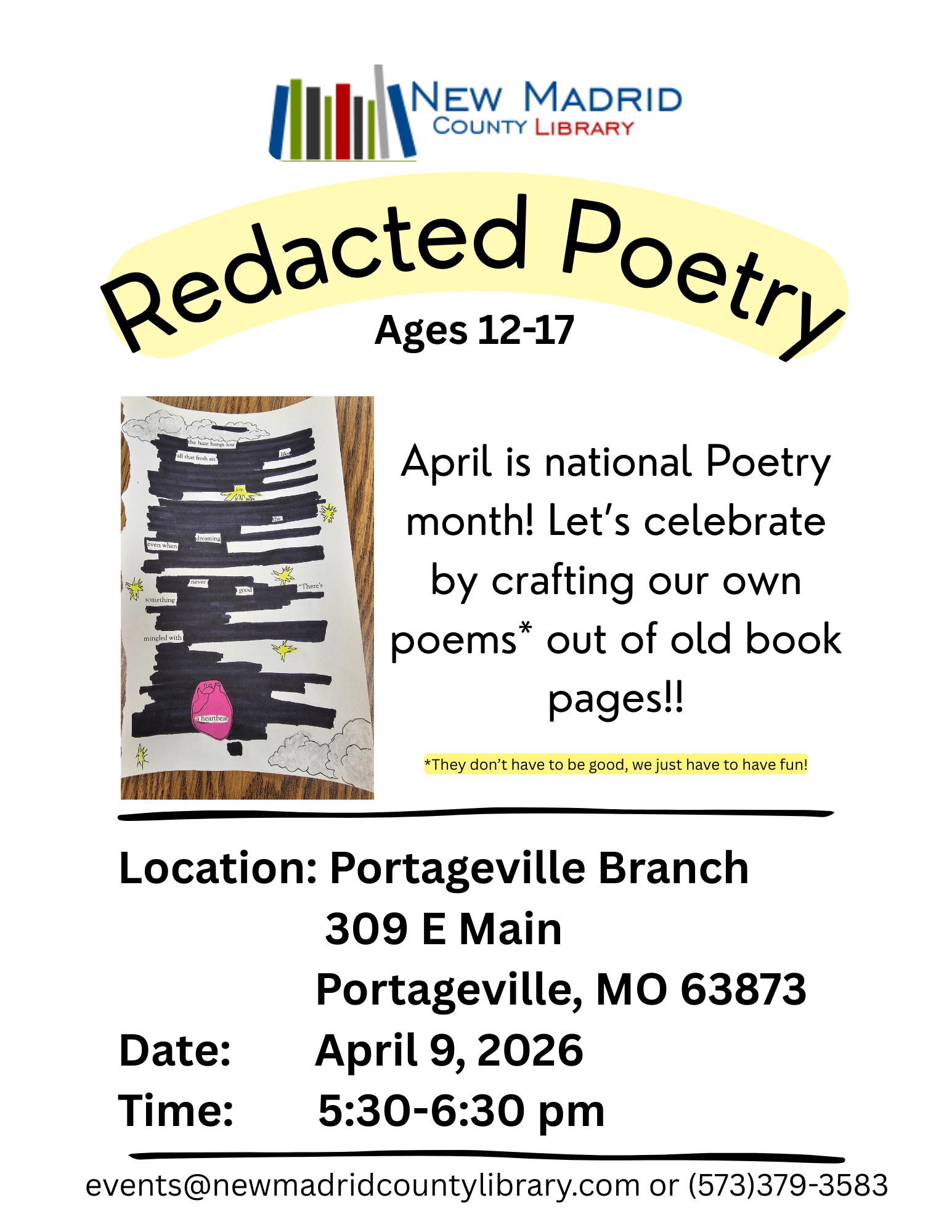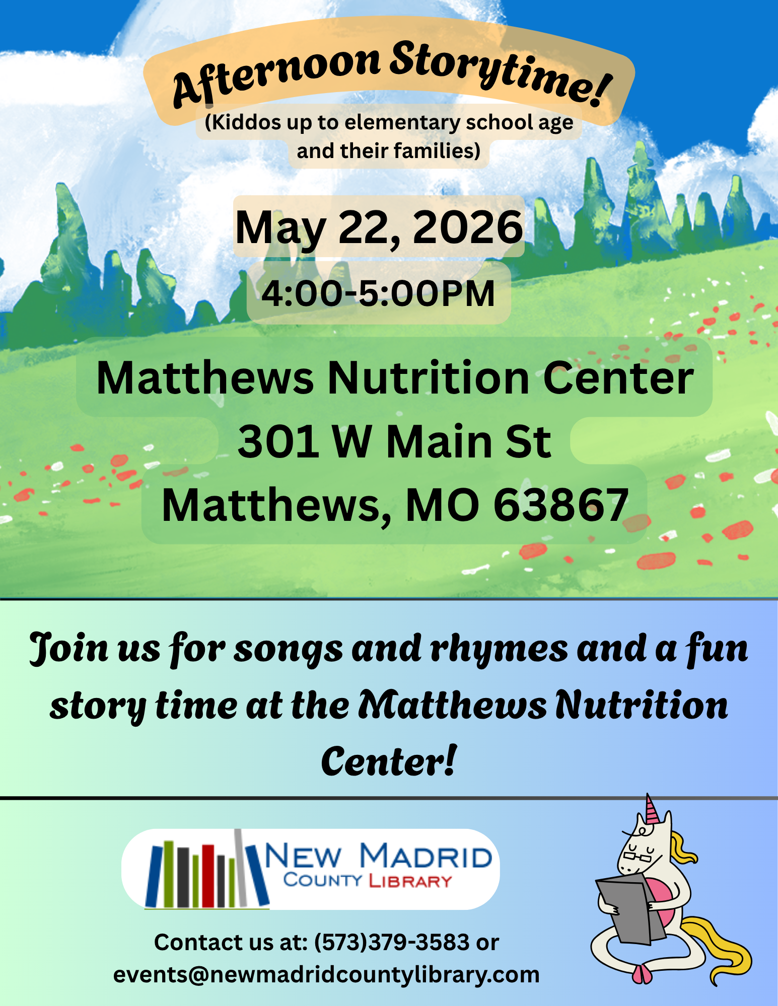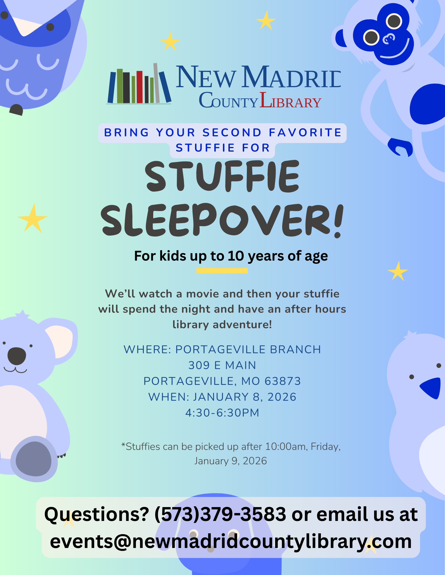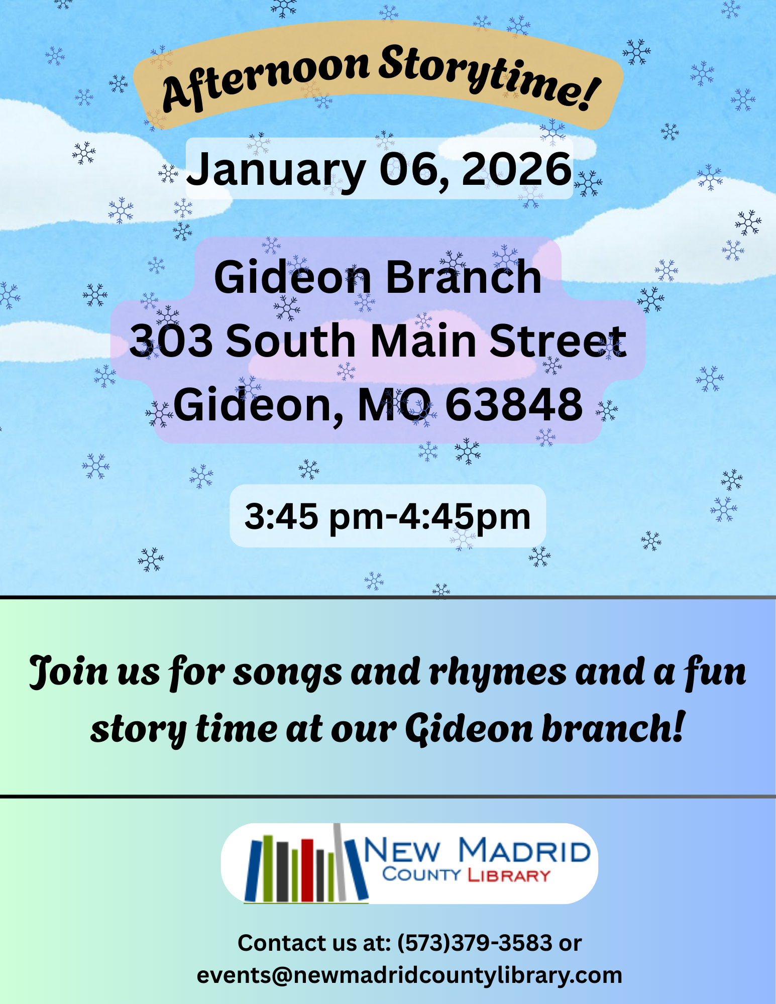On this page you will find information for upcoming events at our branches and throughout the county. Questions? Email us at events@newmadridcountylibrary.com